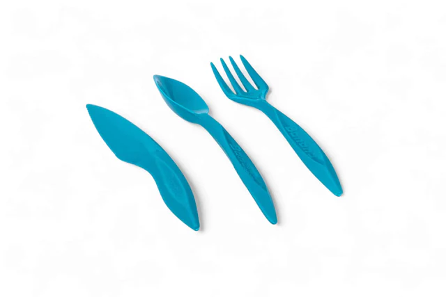 طقم شوكة ومعلقة وسكينة بلاستيك 3ق تركواز Banan