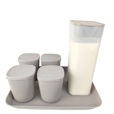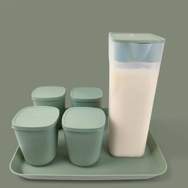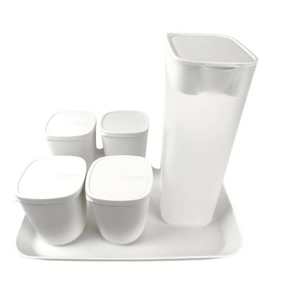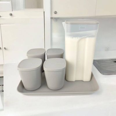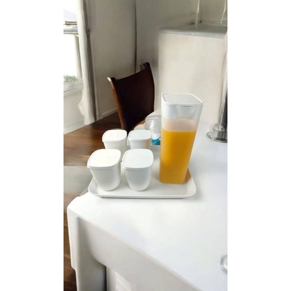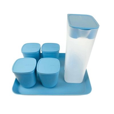 مصنوع من خامات غذائيه عالية الجوده – PP 5سعة الدورق : 1600 ملمكون من : صينيه و دورق شفاف بغطاء ملون و 4 أكواب بغطائهمسهل الغسيل و مريح فى إستخدامه و يدخل الثلاجهصقم عصير بانانا صديق للبيئه و أمن للإستخدام المتكرريمكن إستخدامه لتبريد المياه و العصائر و المشروبات المنزليه الصحيه