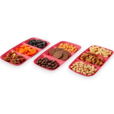 | قدّم طعامك بأناقة وعملية مع طقم صواني الوجبات الخفيفة (3 قطع). مصنوع من مادة البولي بروبيلين الآمنة غذائيًا، يتميز هذا الطقم بأقسام ذكية مقسمة، مما يجعله مثاليًا للوجبات الخفيفة والسلطات والمقبلات والحلويات. مصمم للاستخدام اليومي، وكذلك للتجمعات والمناسبات العائلية، فهو يجمع بين العملية والتصميم العصري الأنيق. المميزات: مصنوع من مادة البولي بروبيلين الآمنة غذائيًا يتضمن الطقم 3 صواني مقسمة مناسب للوجبات الخفيفة والسلطات والمقبلات والحلويات آمن للاستخدام في الميكروويف آمن للاستخدام في غسالة الصحون آمن للاستخدام في الثلاجة خفيف الوزن، متين، وسهل التنظيف |
