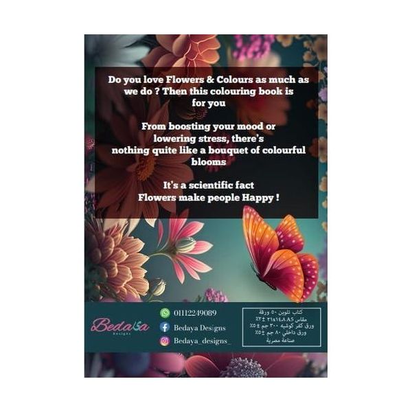 كتاب تلوين من ٥٠ صفحة، مزين بالزهور والفراشات. تصميم عالي الجودة مع الاهتمام بأدق التفاصيل.