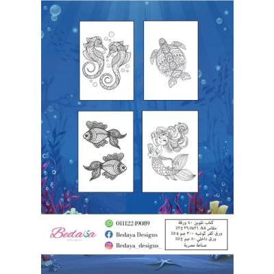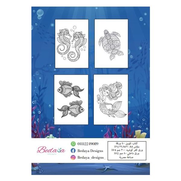 كتاب تلوين ماندالا لكائنات البحر - 40 صفحة - مقاس A4، مصمم بعناية فائقة.