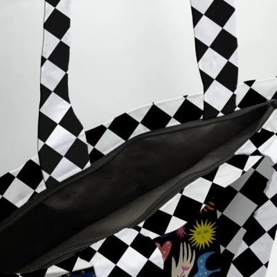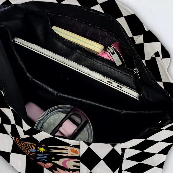 الخامة: قماش بوليستر + قطن. المقاس: 41 × 38 سم (قد يختلف المقاس قليلاً، ربما أقل أو أكثر بمقدار 3-4 سم حسب الخياطة). يحتوي على جيب داخلي بسحاب وفاصل مبطن، وإغلاق بسحاب. يُنظف تنظيفًا جافًا أو يُمسح بقطعة قماش مبللة فقط. اللون: متعدد الألوان.