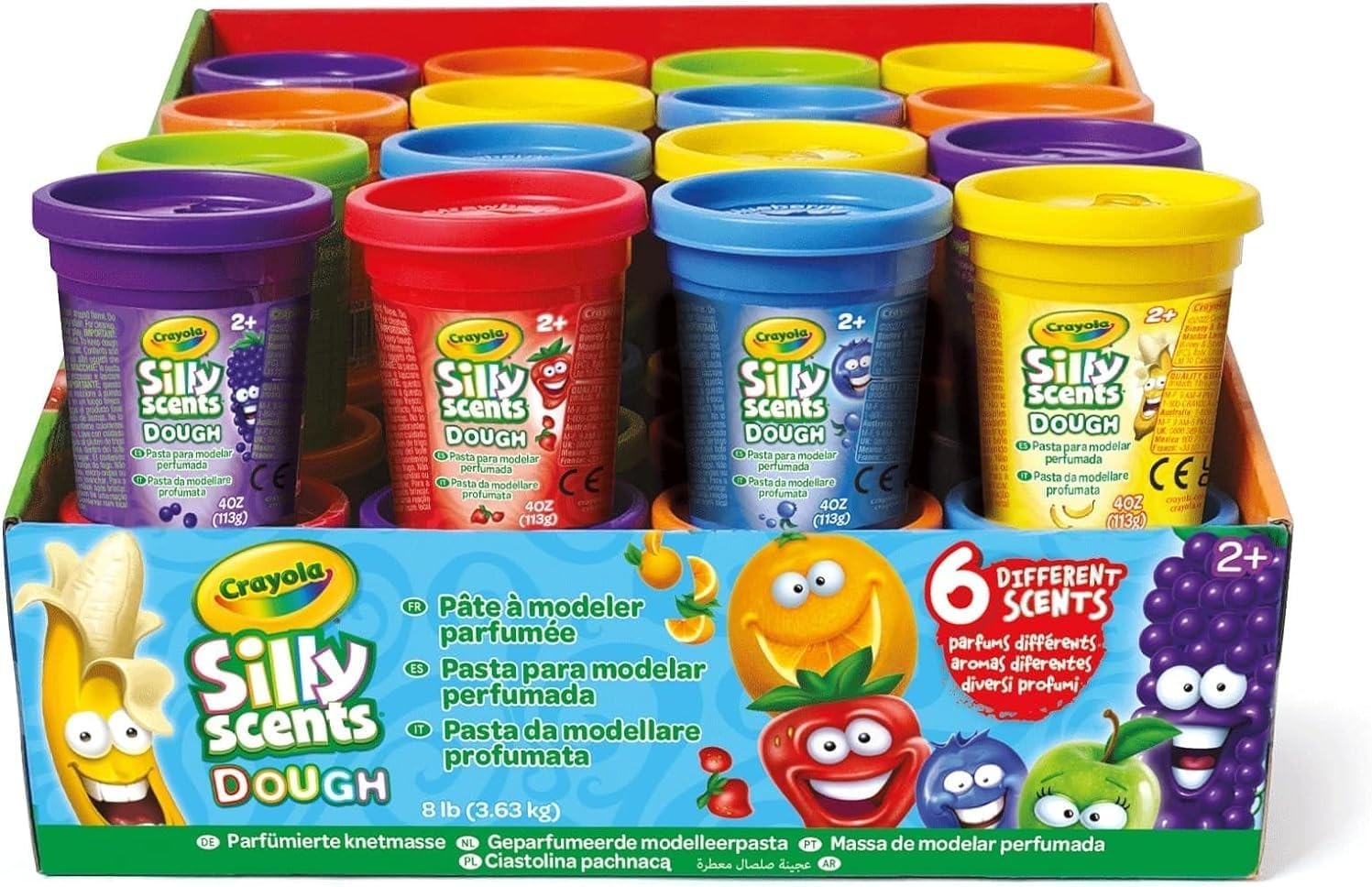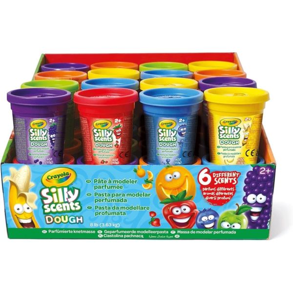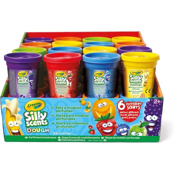 عجينة كرايولا سيلي سنتس: مجموعة جديدة من معجون التشكيل برائحة الفواكه الزكية؛ أبدع، شكّل، واستنشق!6 ألوان، 6 روائح: 32 × 113 غ/للقطعة؛ أصفر (موز)، برتقالي (برتقالي)، أزرق (توت أزرق)، بنفسجي (عنب)، أخضر (أخضر تفاحي)، أحمر (فراولة).مجموعة حفلات: عبوات محكمة الإغلاق من معجون التشكيل المعطر لتقدمها لضيوف حفلتك، لتسلية جميع الأطفال.