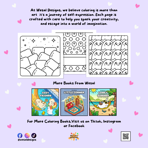 في ويسال ديزاينز، نؤمن بأن التلوين أكثر من مجرد فن، إنه رحلة للتعبير عن الذات. كل صفحة مصممة بعناية لمساعدتك على إطلاق العنان لإبداعك، والهروب إلى عالم من الخيال.