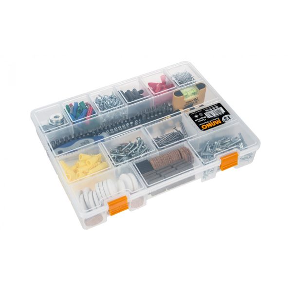 علبة حفظ عدد وادوات بلاستيك شفاف مقسم13بوصة مقاس324×247×51 مم رقمMano-S-ORG-13