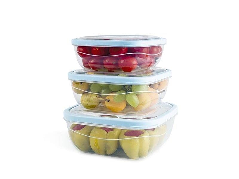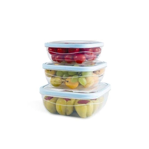 طقم علبة حفظ طعام بلاستيك كريستال شفاف بالغطاء 3ق مقاس1.1-1.6-2.4لتر