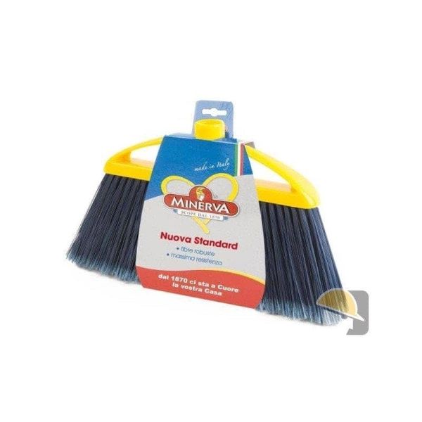 Scopa Minerva Nuova Standard a broom manufactured in Italy. This broom features a compact polypropylene support measuring 238x32x74 mm and utilizes glossy PVC bristles, each 115 mm in length and weighing 135 grams.The Scopa Minerva Nuova Standard is designed for efficient cleaning, offering durability and effective performance. Its universal Italian screw ensures compatibility with various broom handles.