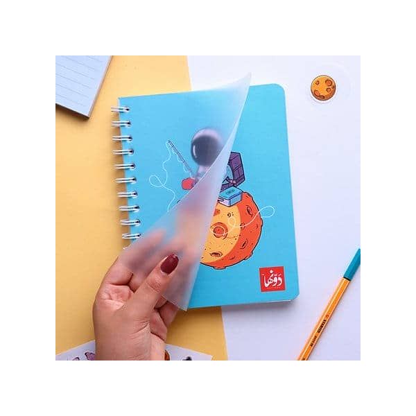 نوت بوك سلك مسطرة ابيض سوفت كفر 100 ورقة + 2 ستيكر مقاس 15 * 20 سم outer space
