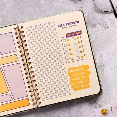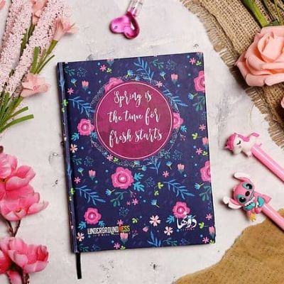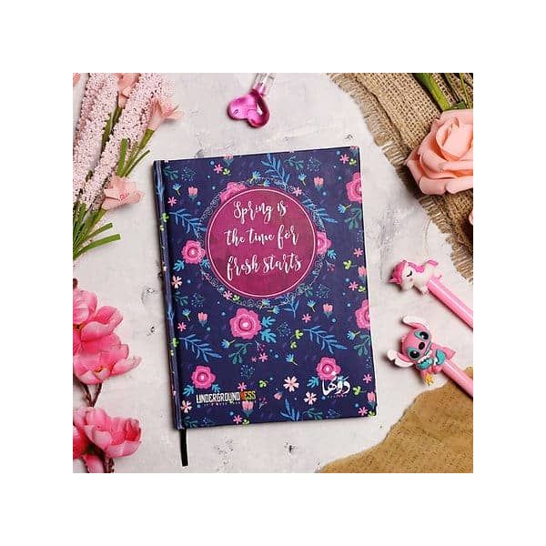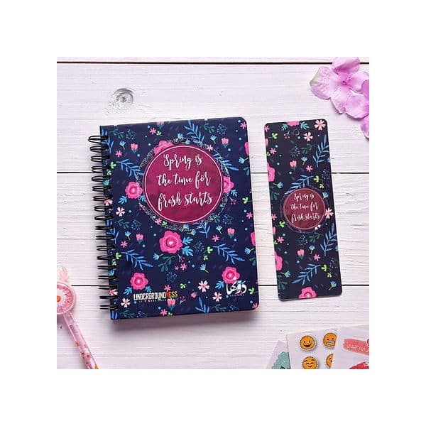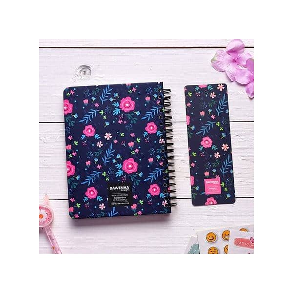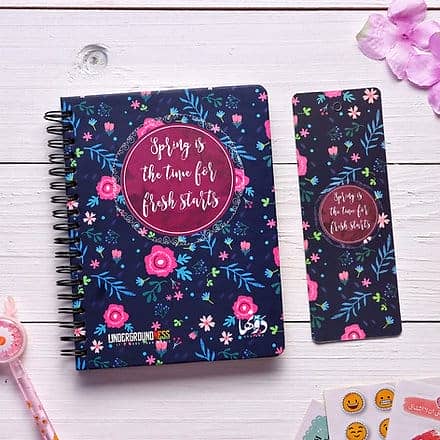 نوت بوك سلك مسطر هارد كفر 65 ورقة + 3 ستيكرز +فاصل كتاب مقاس 12 * 16 سم spring