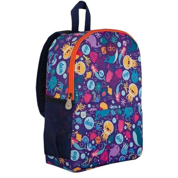 Dea-treat for kids is carefully designed with beautiful pattern & colors to add some extra bit of fun to your kid's day at school. Fully padded back and arms for extra ease & comfort. The bag has 3 pockets and 2 zippers: 1 main compartment, front compartment for the little stuff, and a side net pocket for the water bottle. Dimensions (length x width x depth): 36 x 28 x 12 cm. Material: High Quality Polyester.