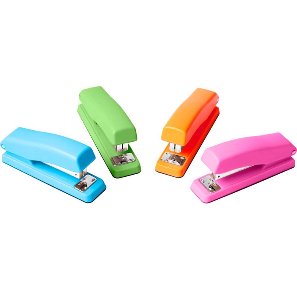 . دباسة نصف شريطية بلاستيكية لون النيون (متنوع) .آلية تحميل سهلة .استخدم الدبابيس القياسية رقم 24/6 26/6 .قاعدة مضادة للانزلاق 12 ورقة