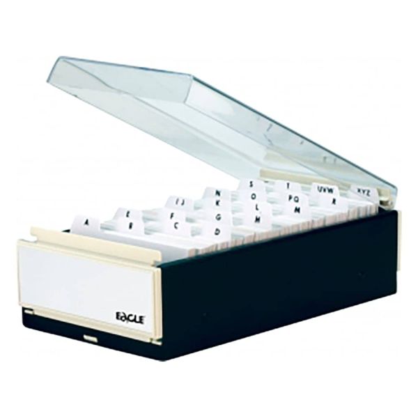 يخزن ما يصل إلى 600 بطاقة، فواصل البطاقات من الألف إلى الياء، 210 × 108 × 67 ملم.