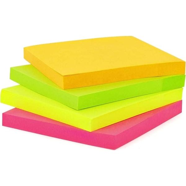654-12N • لوحات مذكرة ملونة نيون • الحجم: 75 × 75 ملم • 12 × 100 ورقة • يتقلص ملفوفة