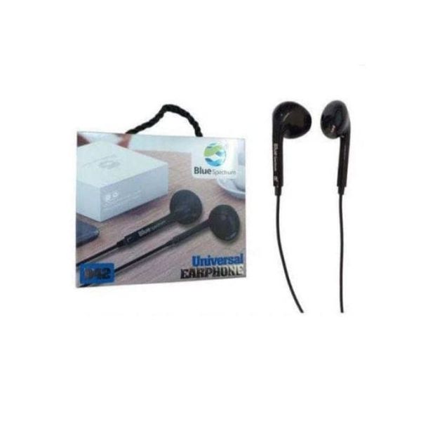 earphone - model : D-42 color :black speaker diameter : 14.2 mm frequency range : 20 H z -20 k h z the wire lenght : 135 cm applicable to the 3.5 foot interface of intelligent mobile phone the stereo output dynamic combination