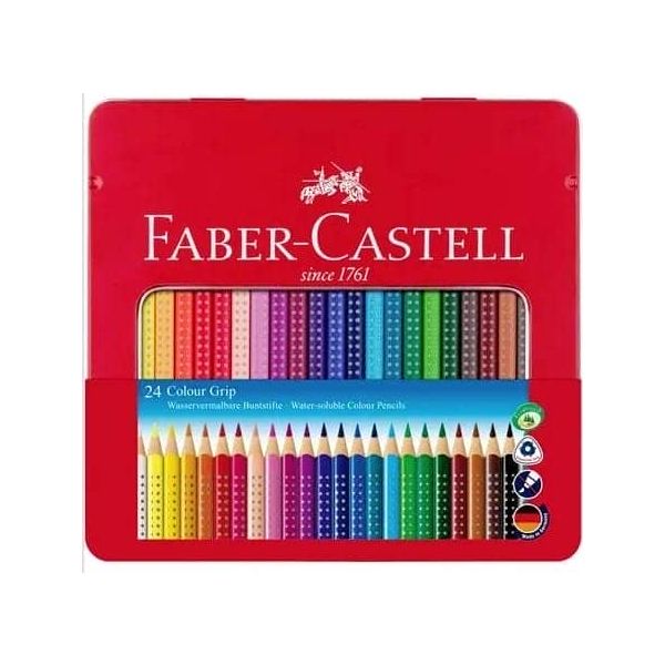 قلم تلوين مع منطقة قبضة حاصلة على براءة اختراع لقبضة آمنة وغير قابلة للانزلاق شكل مثلث مريح ألوان رائعة وضع اللون الناعم أعلى مقاومة للكسر بسبب عملية الربط الآمن (SV) يُغسل من معظم الأقمشة الخشب من الغابات المستدامة ورنيش مائي صديق للبيئة مناسبة لمستخدمي اليد اليمنى واليسرى مع لوحة الاسم القصدير 24