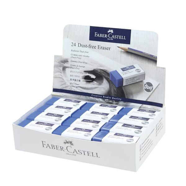 محو نظيف ممتاز سلسلة ممحاة Faber-Castell الخالية من الغبار لأقلام الرصاص والأقلام الملونة تسبب غبارًا أقل ولا تحتوي على ملدنات الفثالات الضارة. يزيل العلامات غير المرغوب فيها بسهولة دون تمزيق الورق
