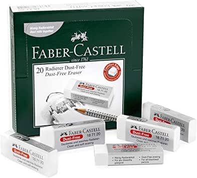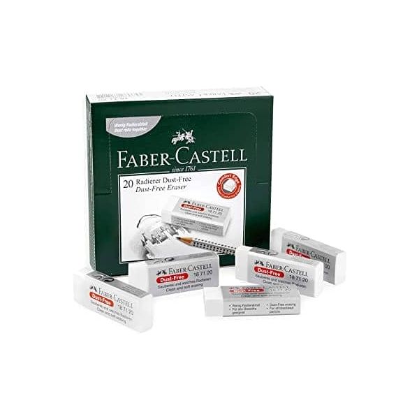 محو نظيف ممتاز سلسلة ممحاة Faber-Castell الخالية من الغبار لأقلام الرصاص والأقلام الملونة تسبب غبارًا أقل ولا تحتوي على ملدنات الفثالات الضارة. يزيل العلامات غير المرغوب فيها بسهولة دون تمزيق الورق