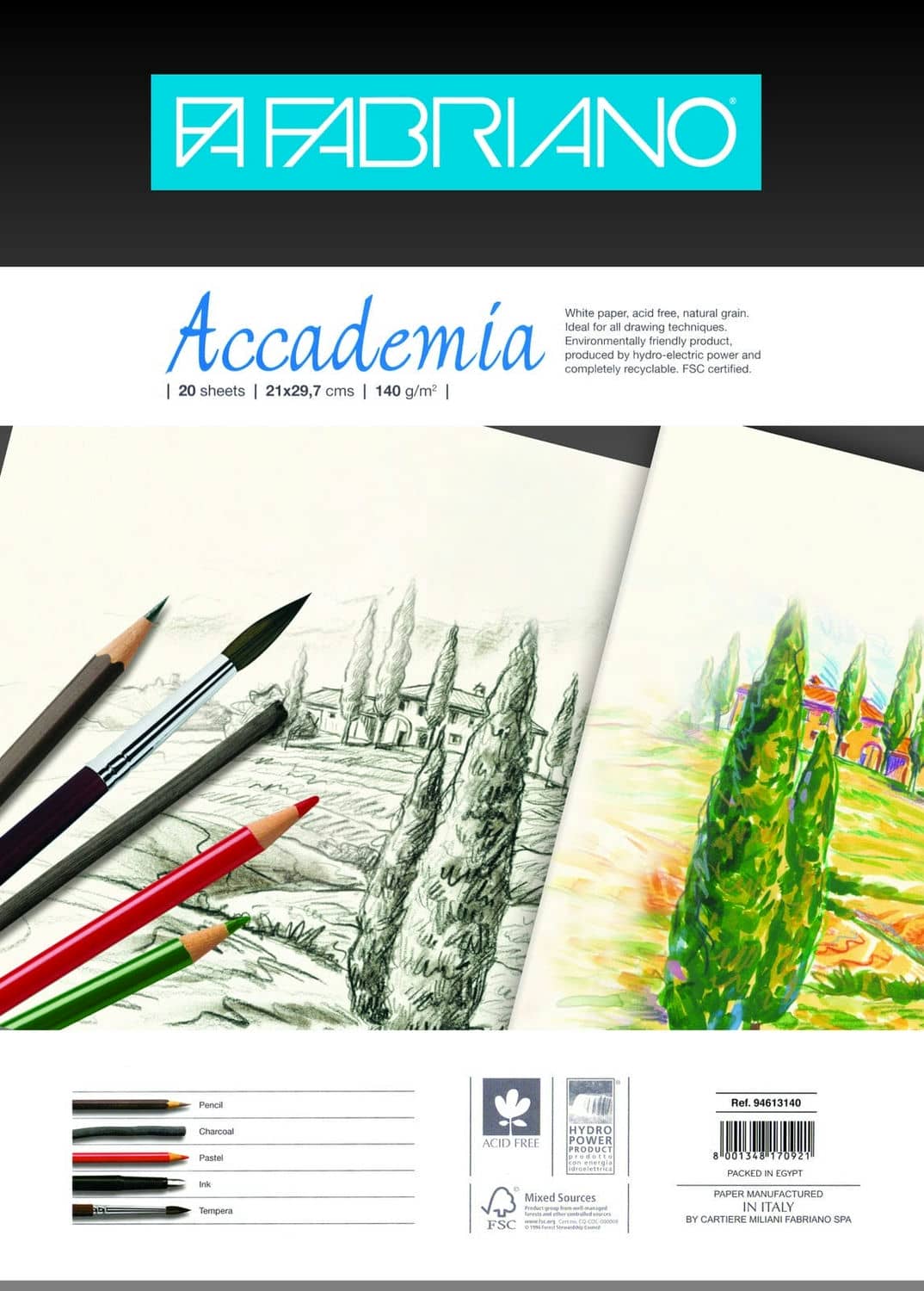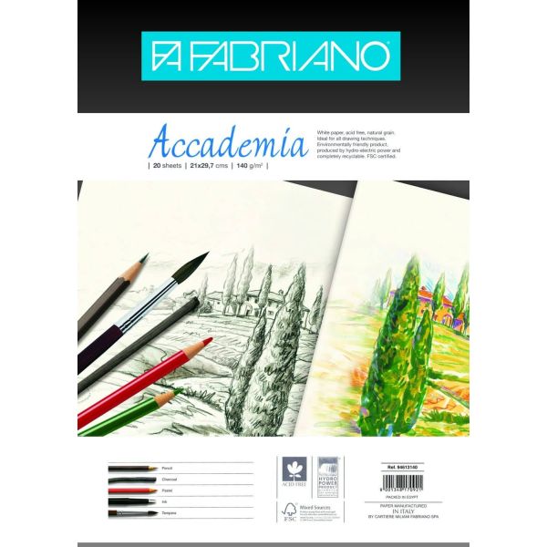 ظرف ورق فبريانو اكاديميا أبيض ناعم 140 جم A4 رقم 140 / 20