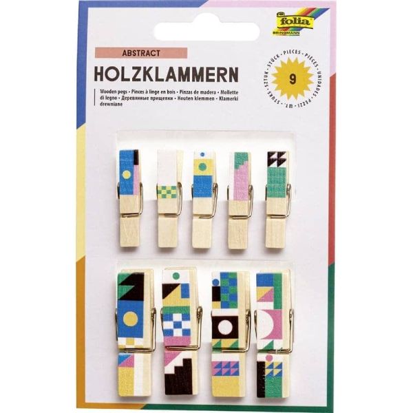 مشابك خشبية مطبوعة، مقسمة إلى مقاسين، 4 كبير مقاطع، 5 مقاطع خشبية صغيرة،