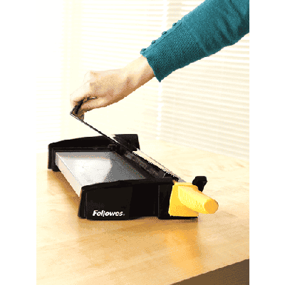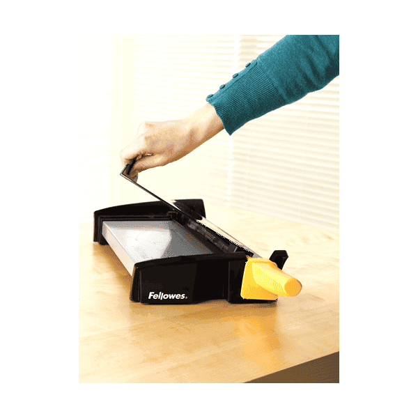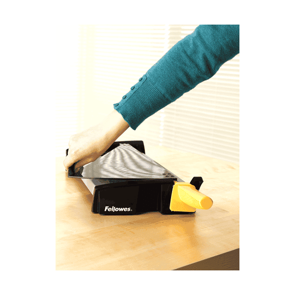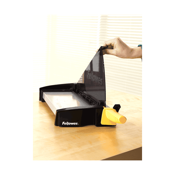 تعتبر مقصلة Fellowes Fusion A4 مناسبة للاستخدام المتكرر في المكاتب الصغيرة والمنزلية. لديها قدرة قطع تصل إلى 10 ورقات في المرة الواحدة. يضمن حاجز الأمان SafeCut أن المقصلة قابلة للاستخدام فقط عندما تكون في مكانها، كما تقلل كتلة الاحتفاظ بالورق من حركة الورق أثناء القطع. تتميز مقصلة Fusion A4 بقاعدة معدنية متينة.