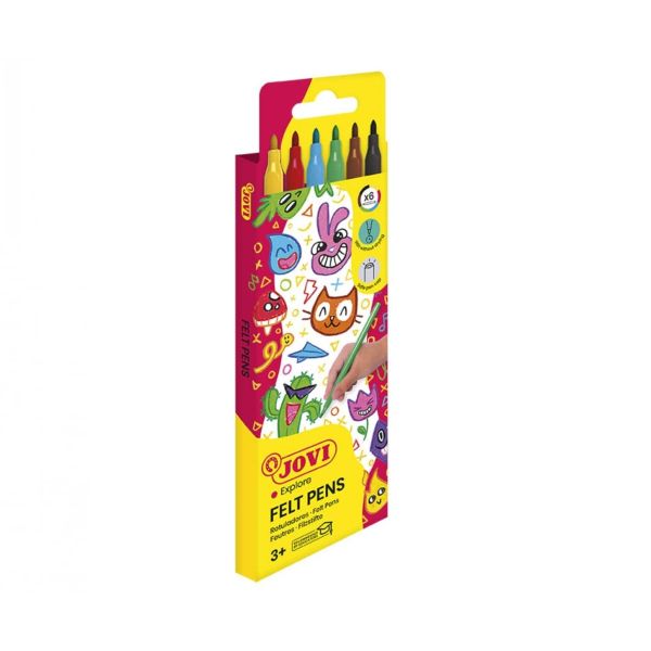 الأحبار المصنوعة من الأصباغ الغذائية. طرف قوي جدًا وشديد التحمل. غطاء أمان جيد التهوية يتم تثبيته بالضغط ويحتفظ بشكله. غسل الحبر من الأيدي والملابس. حبر غير جاف (96 ساعة). تتمتع أقلام الفلوماستر القياسية بمقبض مثلث مريح. ملونة.