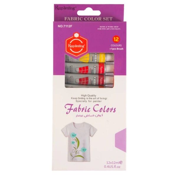 طقم الوان قماش انابيب 12لون 12مللى علبة كرتون Keep Smiling رقم HS-7112F