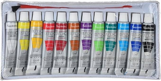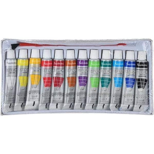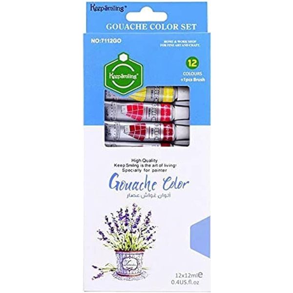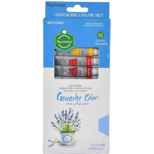 طقم الوان جواش انابيب 12لون 12مللى + فرشة علبة كرتون Keep Smiling رقم 7112GO