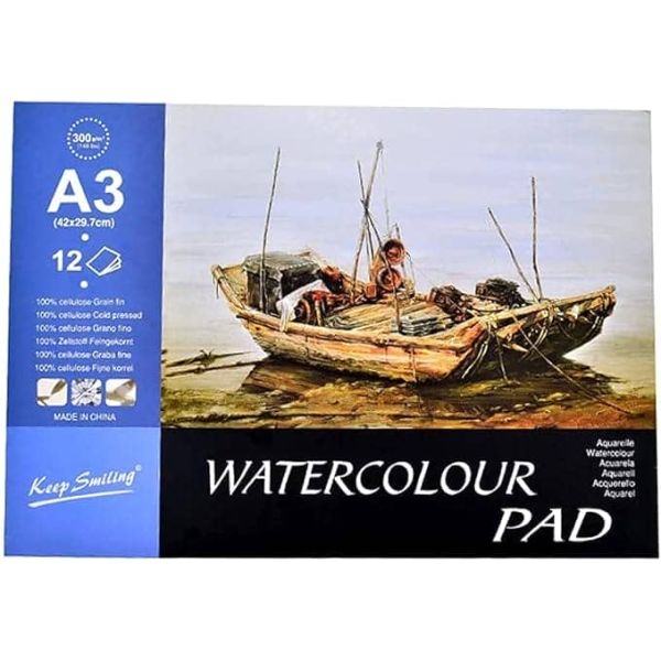 اسكتش رسم للمياه كعب لصق غلاف ورق سوفت كفر 29.7*42سم 12ورقة 300جم Keep Smiling رقم A3-300W
