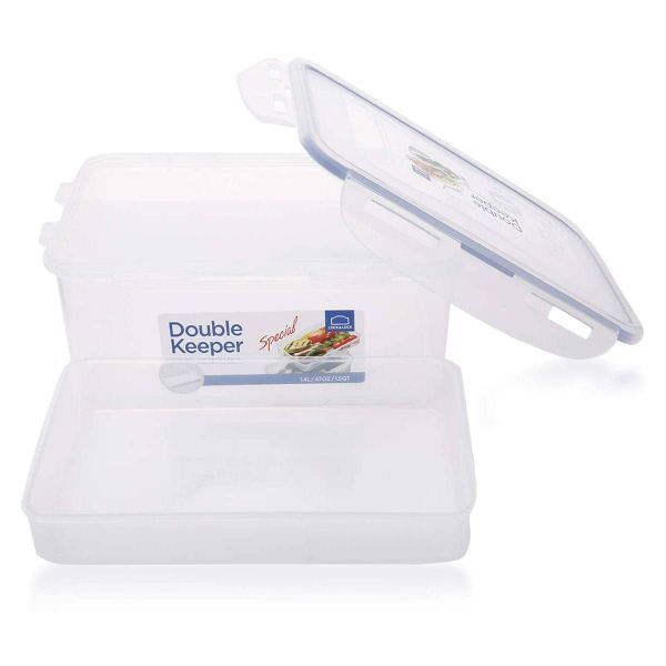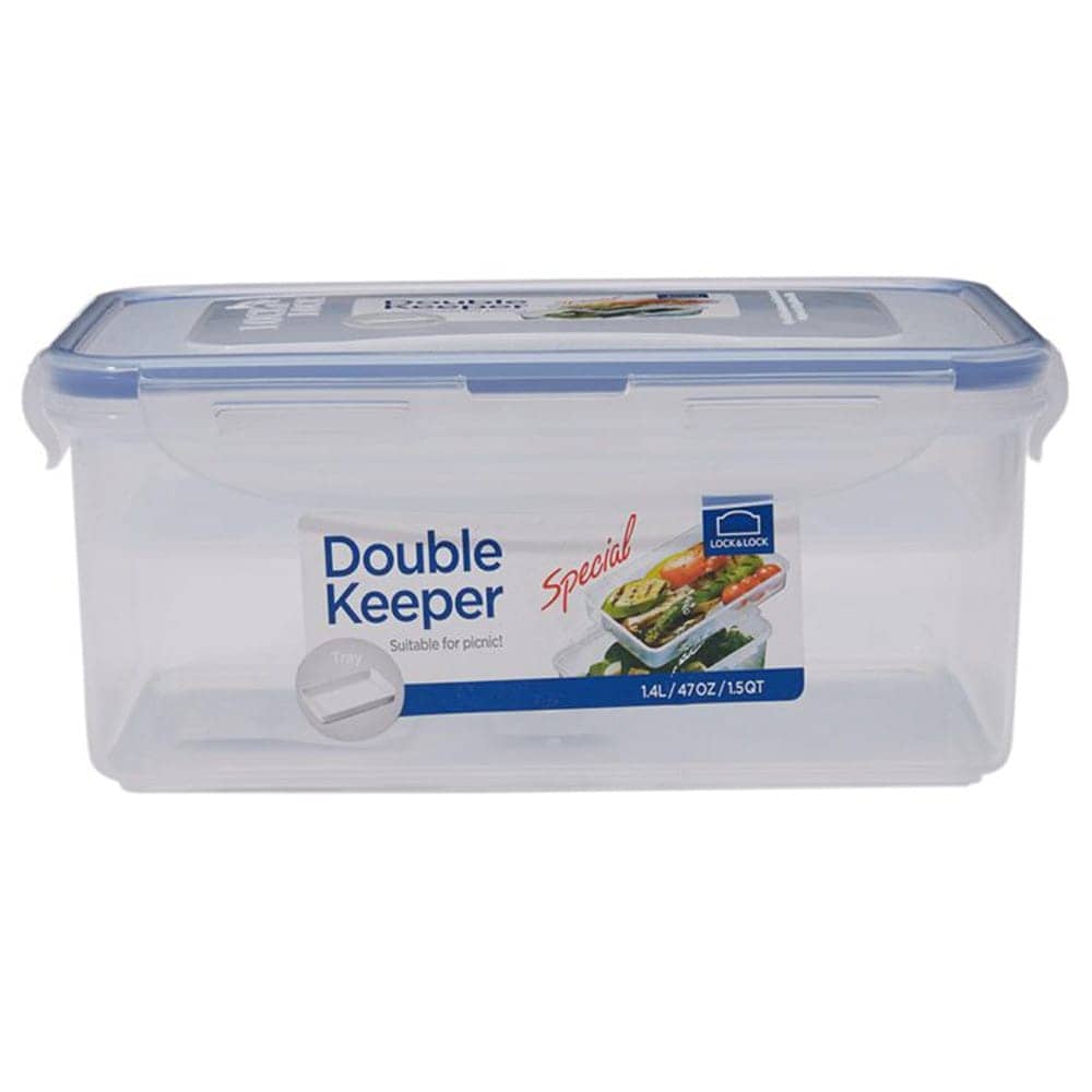 Lock & Lock Rectangular Plastic Container with Divided Inner TrayCapacity: 1.4 L Shape: Rectangular Size: 205*134*69 mm Color: TransparentFeatures:100% leak-proof Microwave safe Dishwasher safe Microwave safe