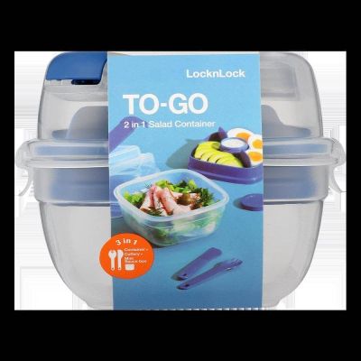 لانش بوكس شفاف تو جو + شوكة + ملعقة +سكينة+بولة صوص مقاس 0.950لتر رقم HSM8440TL