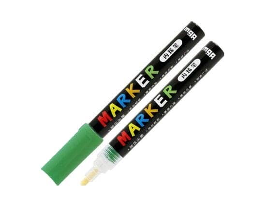 قلم أكريليك للتزيين والرسم على معظم الأسطح مثل: الخشب، الورق المقوى، الورق، القماش، الزجاج، المطاط، البلاستيك، الفولاذ، الحجر، القماش، البوليسترين مقاوم للماء وسريع الجفاف مقاوم جدًا لأشعة الشمس، ويتميز بالالتصاق العالي بالركيزة سمك الخط 2 مم