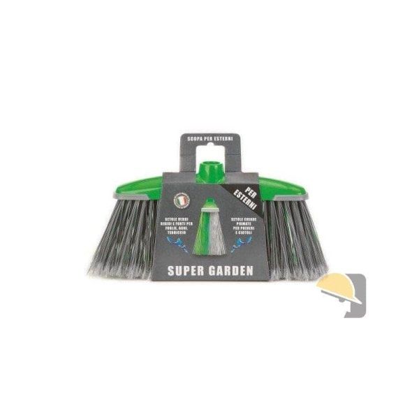Scopa Minerva Garden, a broom manufactured in Italy. This broom features soft yet durable bristles, making it ideal for use in gardens. is made from sturdy plastic to ensure long-lasting durability