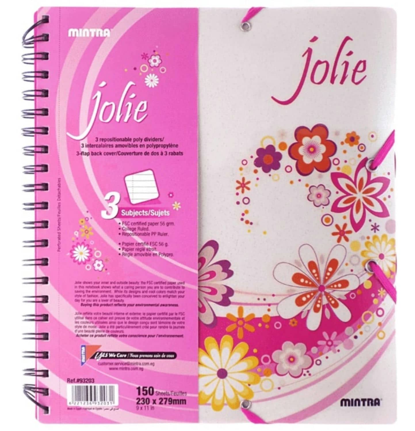 كشكول جولى 150 ورقة / بلاستيك لولبى 4/3