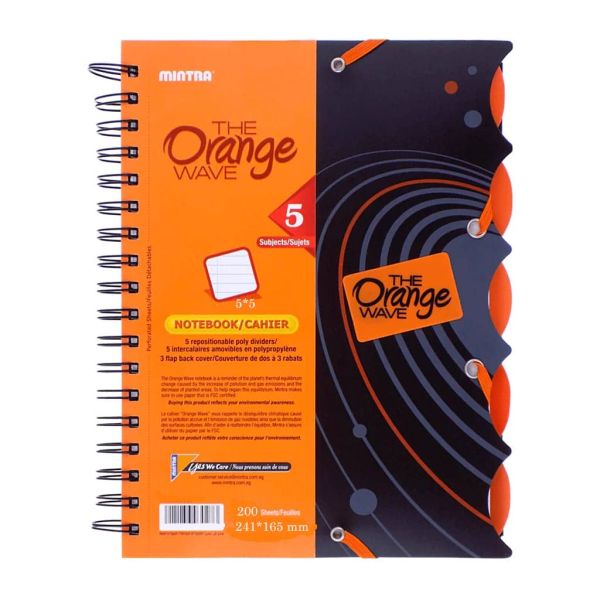 كشكول سلك مربعات 0.5 سم200ورقة 5فاصل mintra-orange غ بلاستيك رقم 93025مقاس 16.5*24.1سم