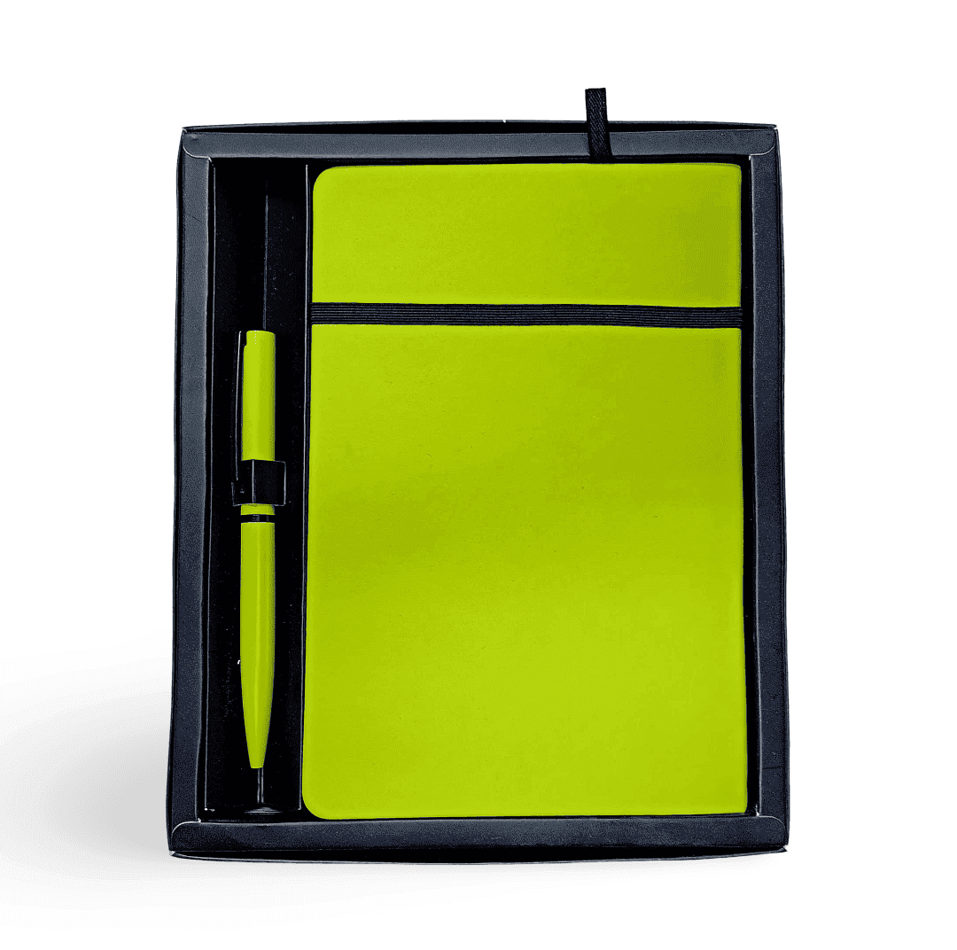 نوت بوك مسطر لاصق بأستيك ورق كريمى Green+قلم مقاس14*20سمSET 28-318