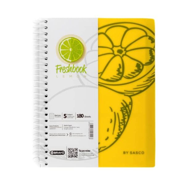 كشكول سلك مسطر ابيض 180ورقة غ دوبلكس5فاصل مقاس17*24.5سمFresh