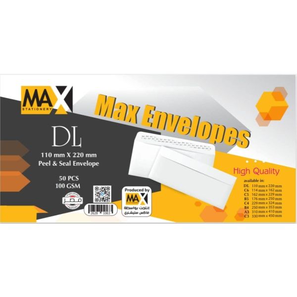 باكو ظرفMax ابيض لصق ذاتى 100جرام مقاس110*220مم /50
