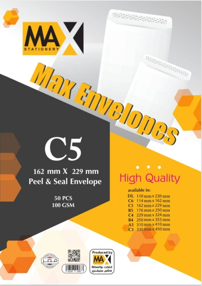انت تقيم:باكو ظرفMax ابيض لصق ذاتى 100جرام مقاس162*229مم /50