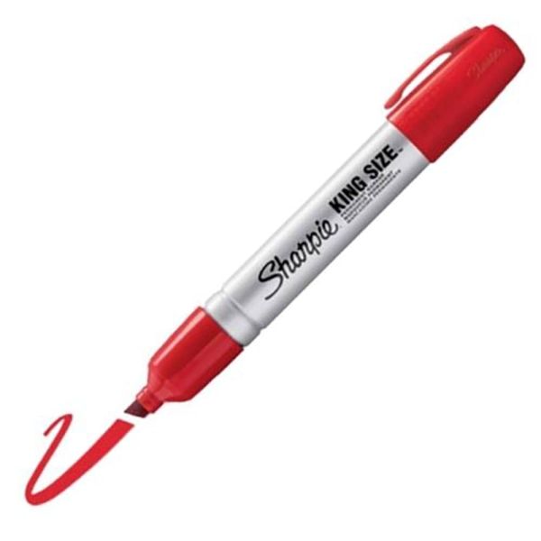 Marker pen from Sharpie. The pen is filled with permanent ink that also works on wet and oily surfaces. Durable 6.2 mm beveled tip thick tip. Iron-resistant pen made of metal and plastic cap. Perfect for industrial marking of wood. metal, glass, plastic. leather and more. Line width: approx. 6.2 mm.