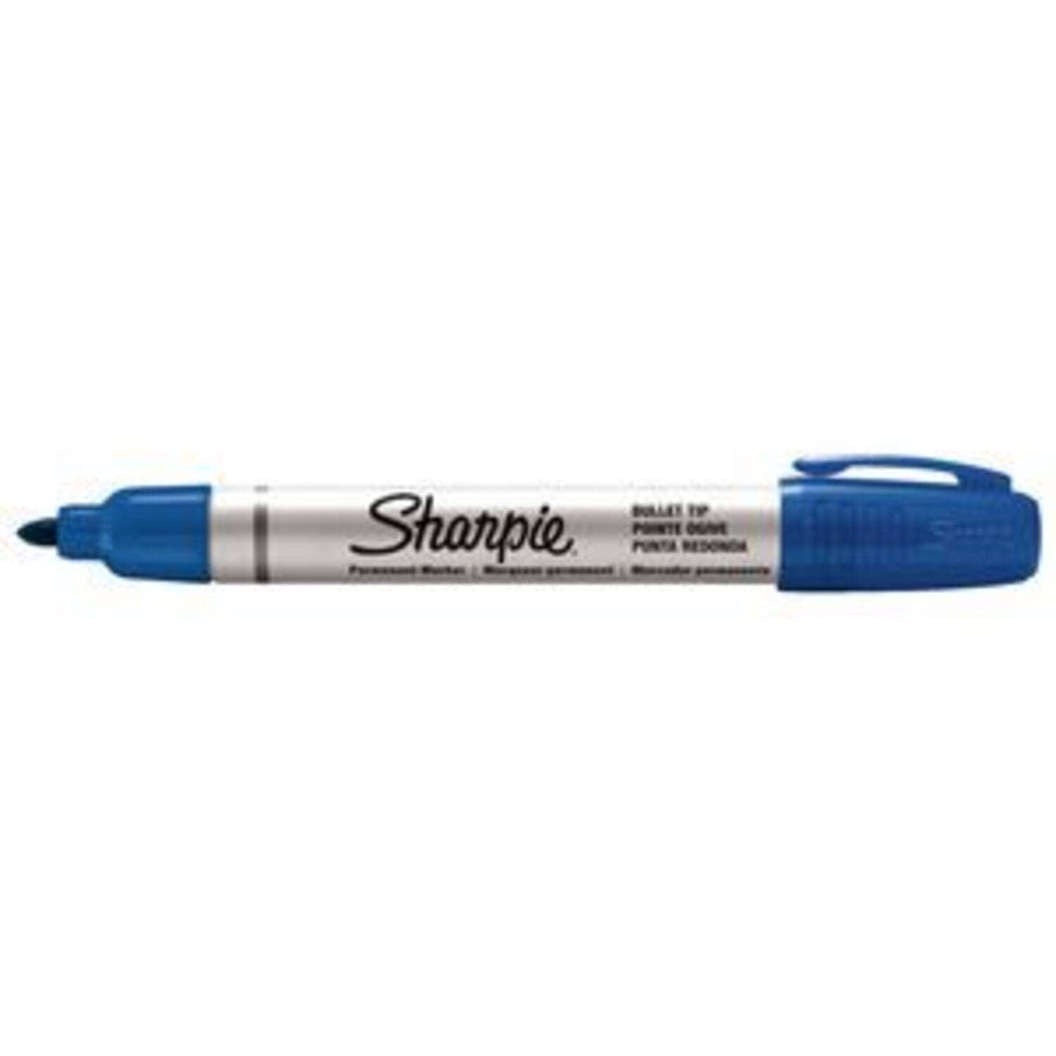 Featuring an industrial strength bullet tip, the Sharpie Professional Bullet Tip Permanent Marker is power packed to provide that extra punch. The non-slip barrel and cap design make it easy to remove the cap even when you’re wearing gloves and the oval-shaped barrel won’t roll off of flat surfaces. The Bullet Tip works on almost any surface—including wet and oily surfaces. Both water-resistant and quick drying, the Bullet Tip is made to deliver lasting impressions and reliable performance.Creates clear lines on plastic, wood, stone, foil, metal, corrugate and leather Durable bullet tip and aluminum body are tough enough to handle heavy use Quick-drying ink is fade and water resistant