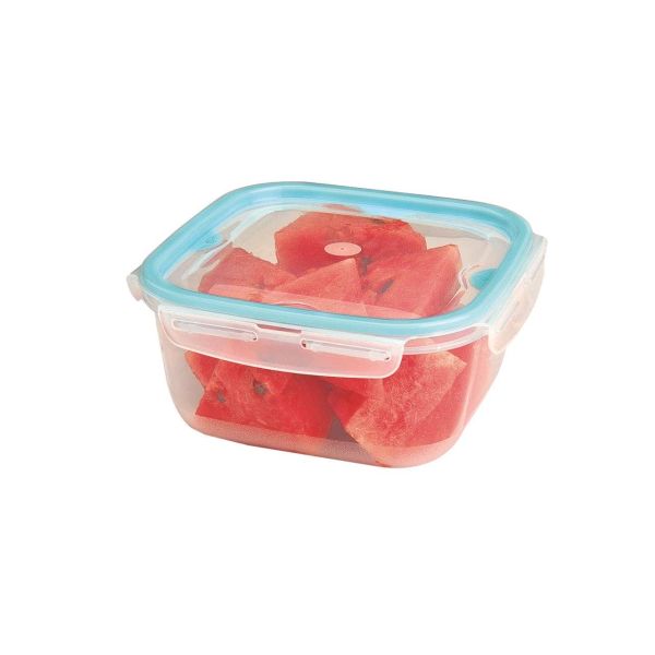 علبة حفظ طعام بلاستيك شفاف مربع بالغطاء لوك فيت مقاس2.4لتر
