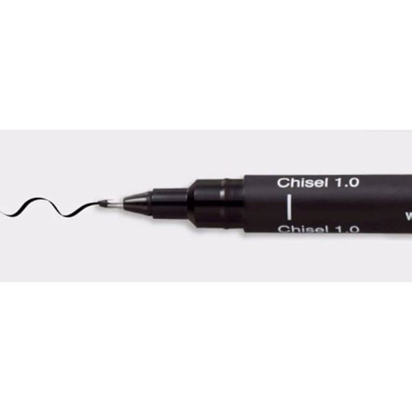 This marker has a 0.3-1 mm chisel nib so you can create different line widths. It is a great option for precision drawing, sketching or drafting. The Uni Super Ink is permanent, fade proof and waterproof. It has a pocket clip on the lid so you can easily take it on the go. The super tough tip will ensure this liner can withstand pressure and last a long time. The window cap displays the nib width for easy identification. This liner has smooth black ink.