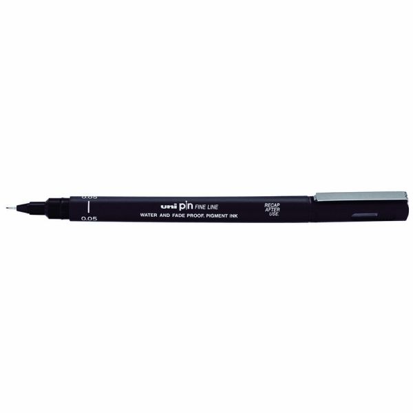 A fade-proof and water resistant pigment ink fine line pen, the uni-ball PIN is often the first choice for artists and designers. The PIN’s wide choice of nib sizes allows you to create crisp, clear lines and perfect techniques such as stippling, cross-hatching and shading.Drawing pen, loved by architects, artists and graphic designers Solid, pigment ink line can easily be used with watercolour as the ink will not smudge when wet Wide range of nib sizes available, Nib is supported and protected by steel Containsfade-free, water-resistant uni Super Ink