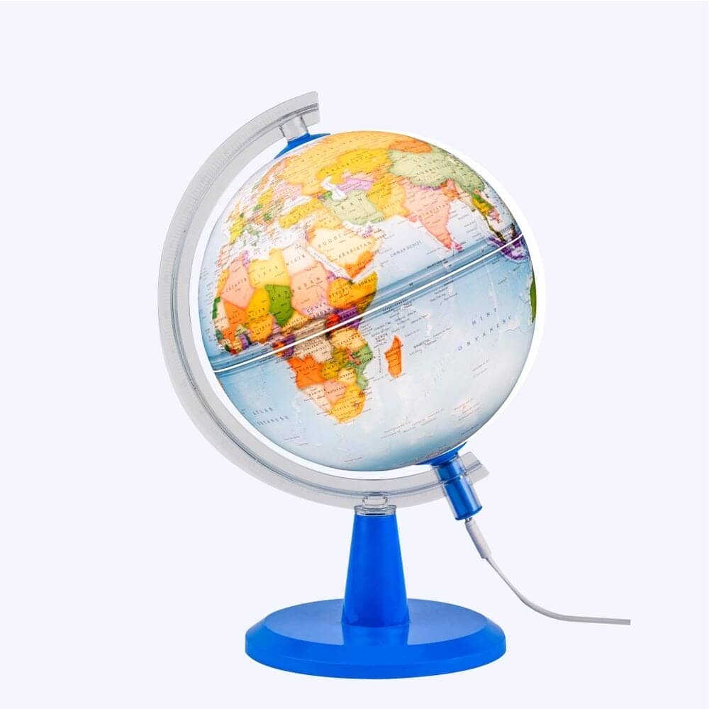 نقدم لكم مجسم الكرة الأرضية المضيئة والذي تظهر على سطحه الخريطة السياسية للعالم بمقياس 1:63000000. الكرة الأرضية مصنوعة من البلاستيك يبلغ قطرها 20 سم وأقصى ارتفاع لها 29.5 سم. تأتي بقاعدة مستديرة، يتم تركيبها عن طريق البراغي.
