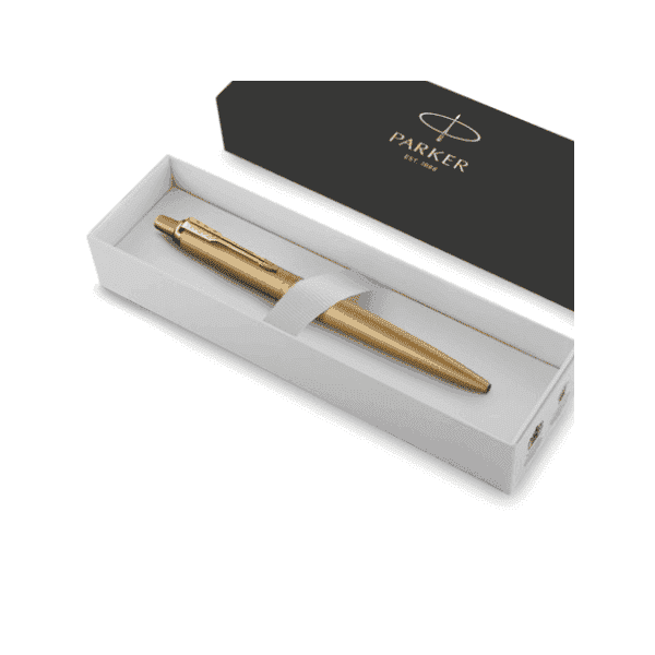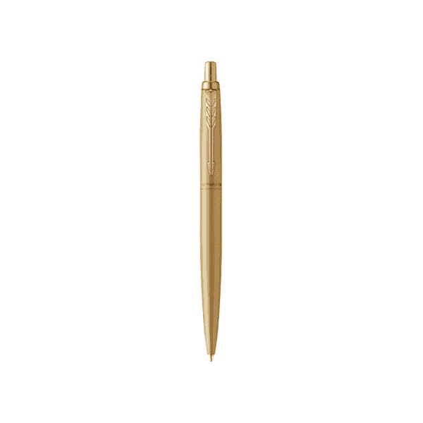 الحالة: الفولاذ المقاوم للصدأ. نظام التعبئة: عبوات باركر القياسية القابلة للاستبدال لأقلام الحبر الجاف وعبوات جل باركر. الآلية : الدفع . اللمسة النهائية: الفولاذ المقاوم للصدأ المصقول، طلاء ذهبي، عناصر تصميم فردية - طلاء PVD بلون العلبة. اللون: ذهبي مطفي.