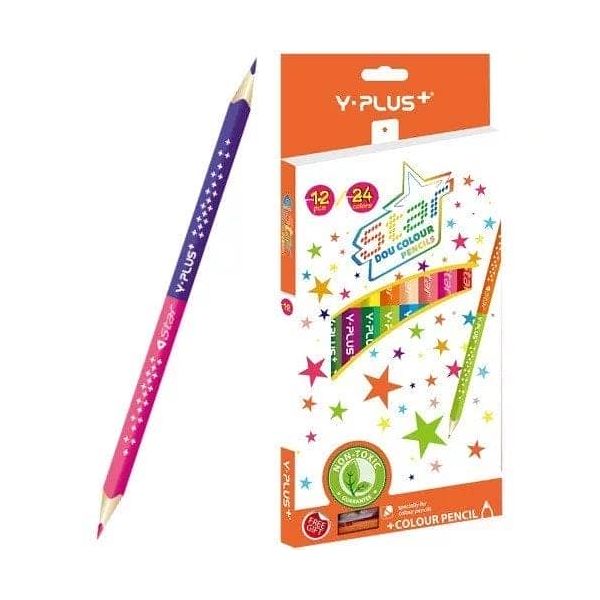 Colors : The package contains 12 double-sided pencils, so a total of 24 colored pencils allow for endless creativity. With different shades, you can easily create beautiful drawings, paintings or colored notes. Quality : Y-PLUS+ pencils are made of quality material, so they are easy to use and durable. Non-toxic : The pencils do not contain toxic substances, so they are also safe for children.