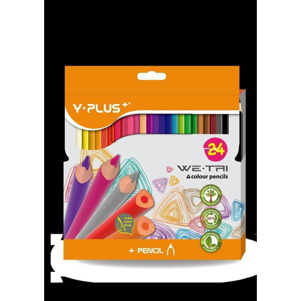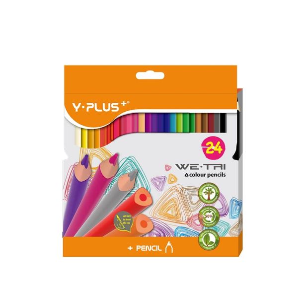 Y-Plus WE TRI Color Pencils 24 Assorted Colors Brand : Y-PLUS Coloured pencils 24 colors WE-TRI. Pencils comfortable for drawing, easily sharpened, and the hard pencil lead is made of high quality natural material. Bright colours, soft uniform lines. Case colour matches the colour of pencil lead.