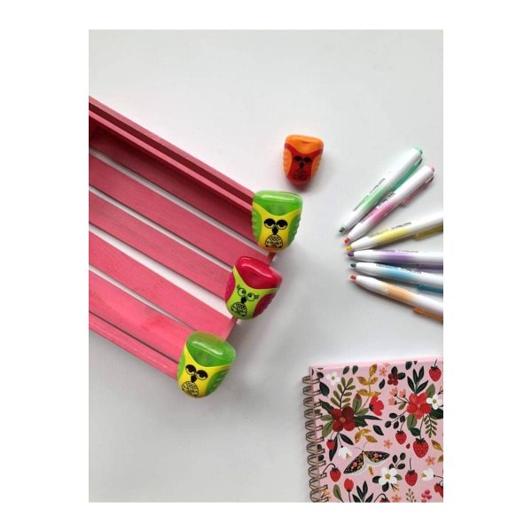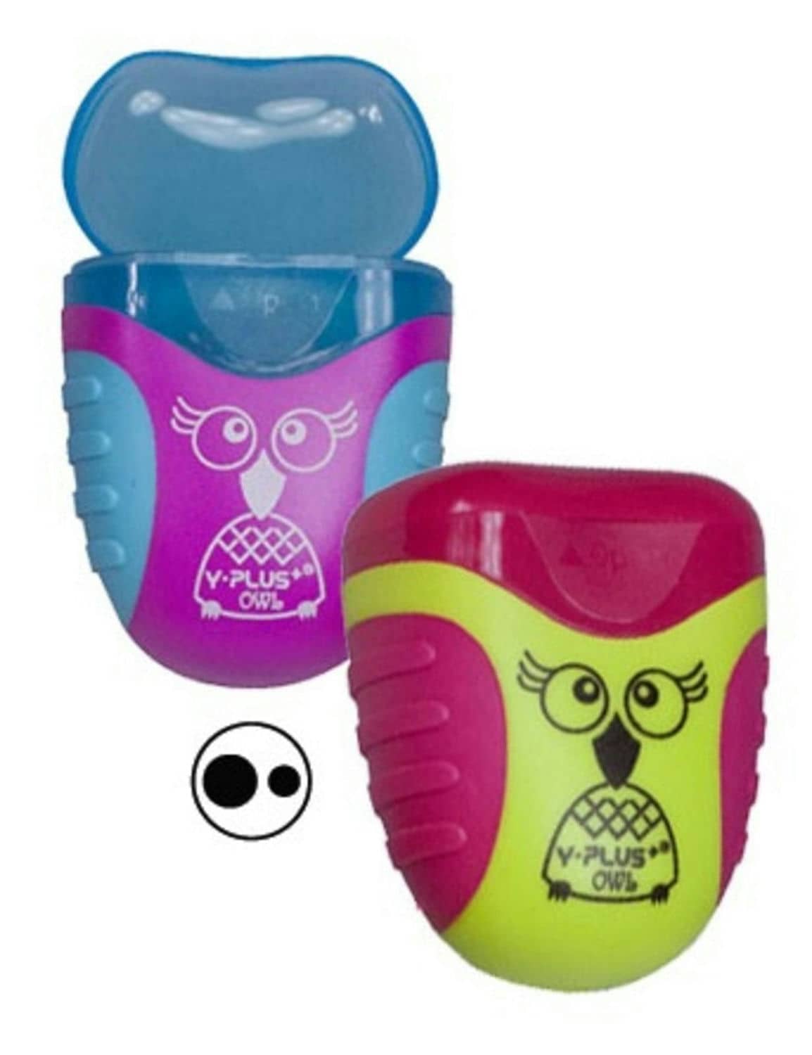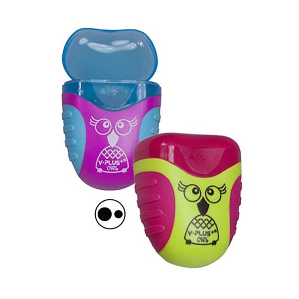 * Comes in bright colors and funny designs * The soft grip makes it comfortable to hold * Two holes for standard and jumbo pencils * The big container reduces the frequency of emptying shavings * The sharp metal blade allows easy sharpening