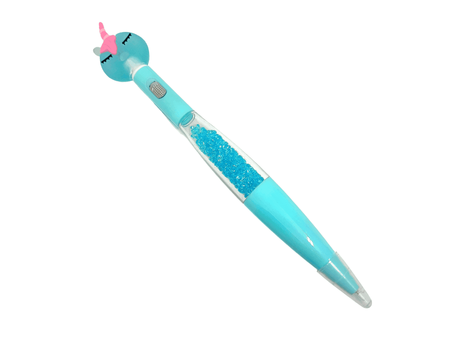 قلم جاف سن ابرة بغطاء مضئ جسم شفاف الوان بخرز Blue رقم QQ-1323