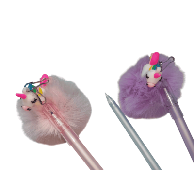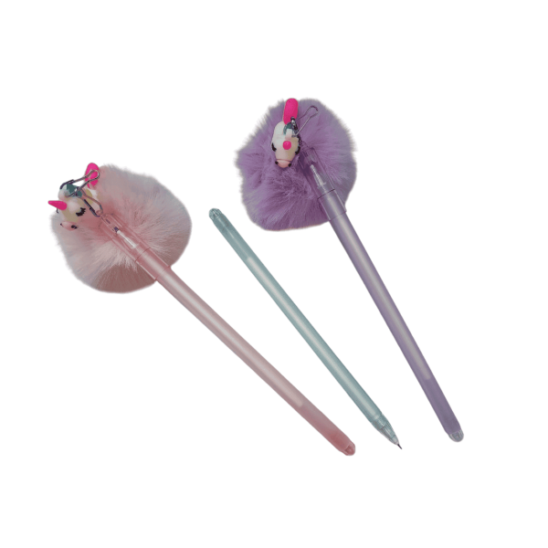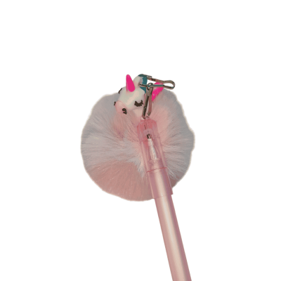 قلم جاف سن ابرة بغطاء بميدالية سيليكون فرو Blue رقم QQ-2607